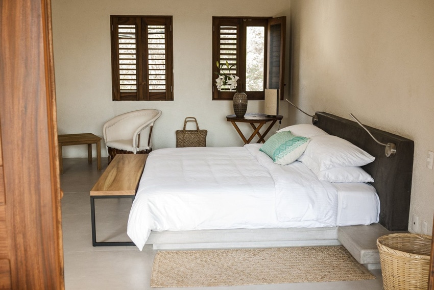 Minimalist white-washed rooms feature handmade textiles, Mexican-inspired furniture, down-filled mattresses, and a tropical rustic flair. Each room has a private terrace, and comes with wifi, A/C, and luxe toiletries for your stay.